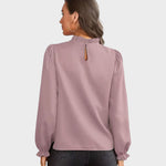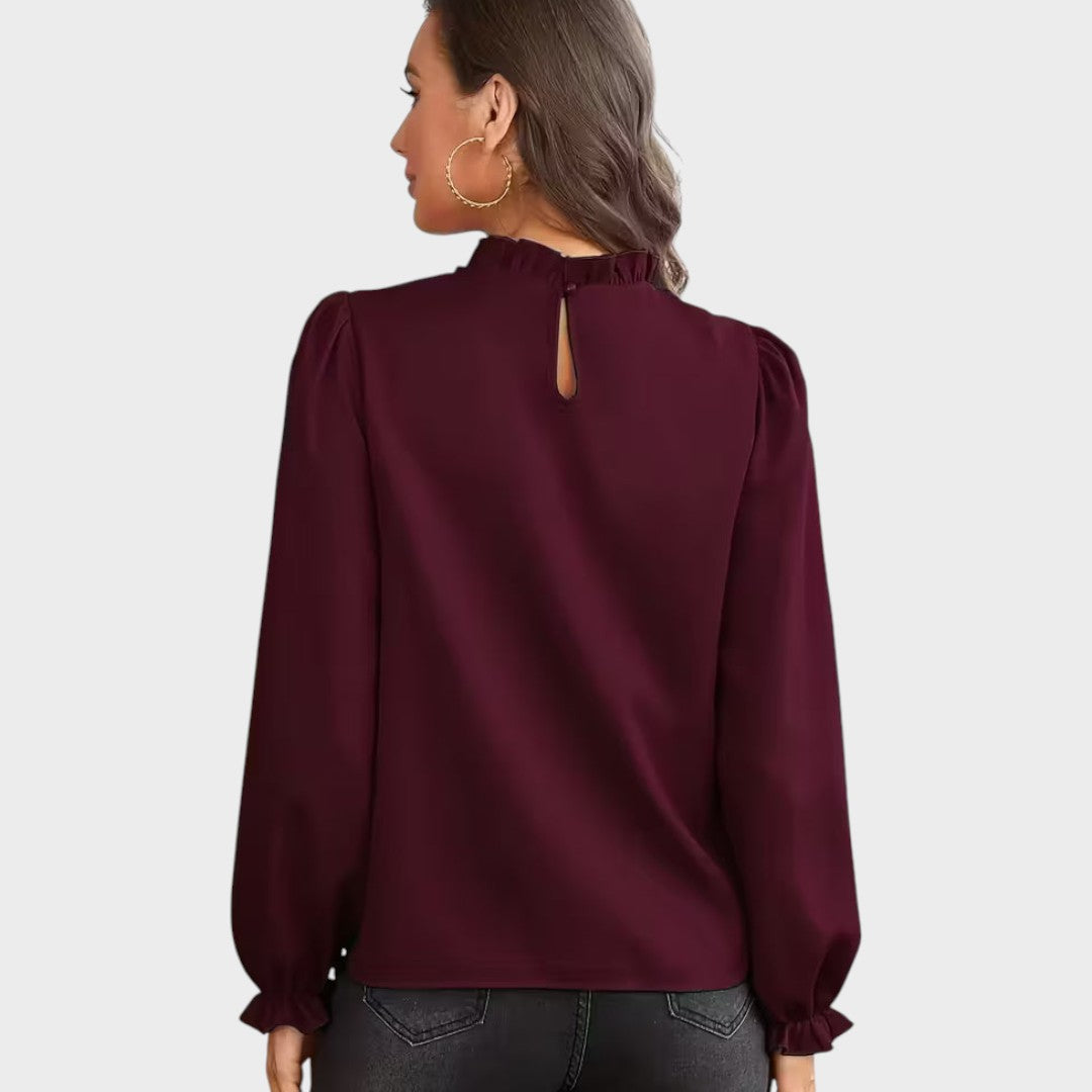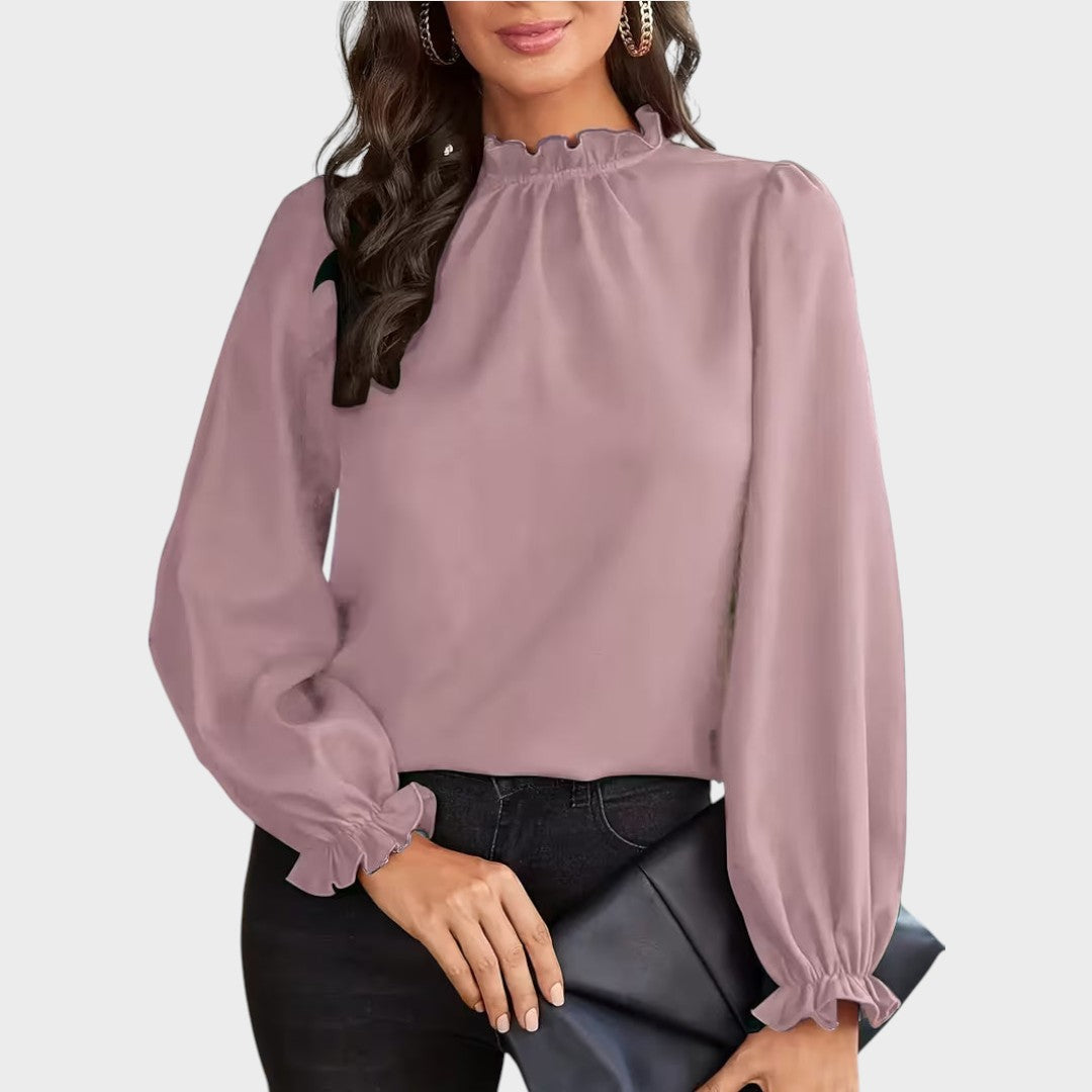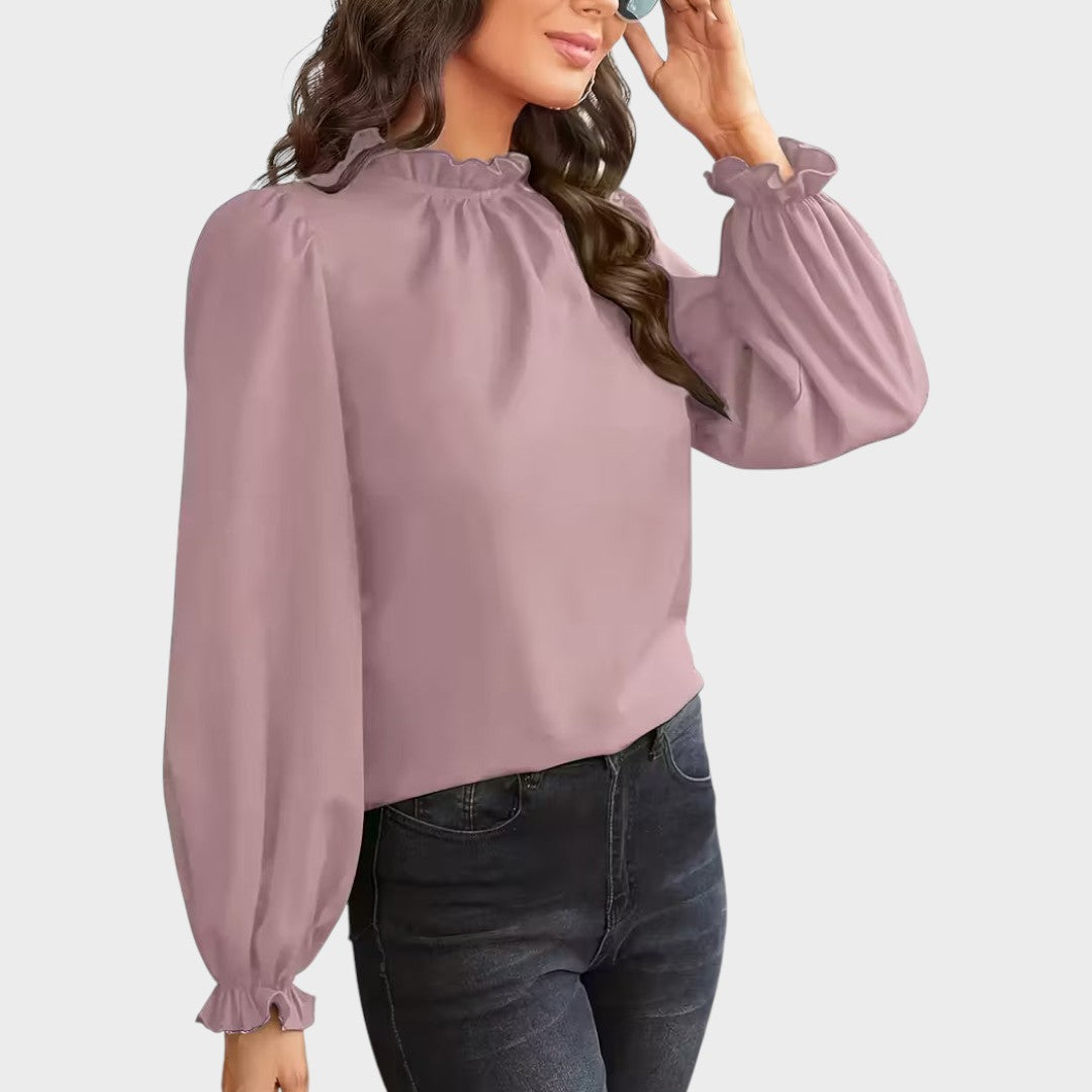Esta blusa foi criada para quem aprecia elegância subtil e conforto em perfeita harmonia. A gola com acabamento delicado acrescenta um toque feminino e sofisticado, enquanto as mangas compridas com punhos franzidos criam uma silhueta leve e fluida.