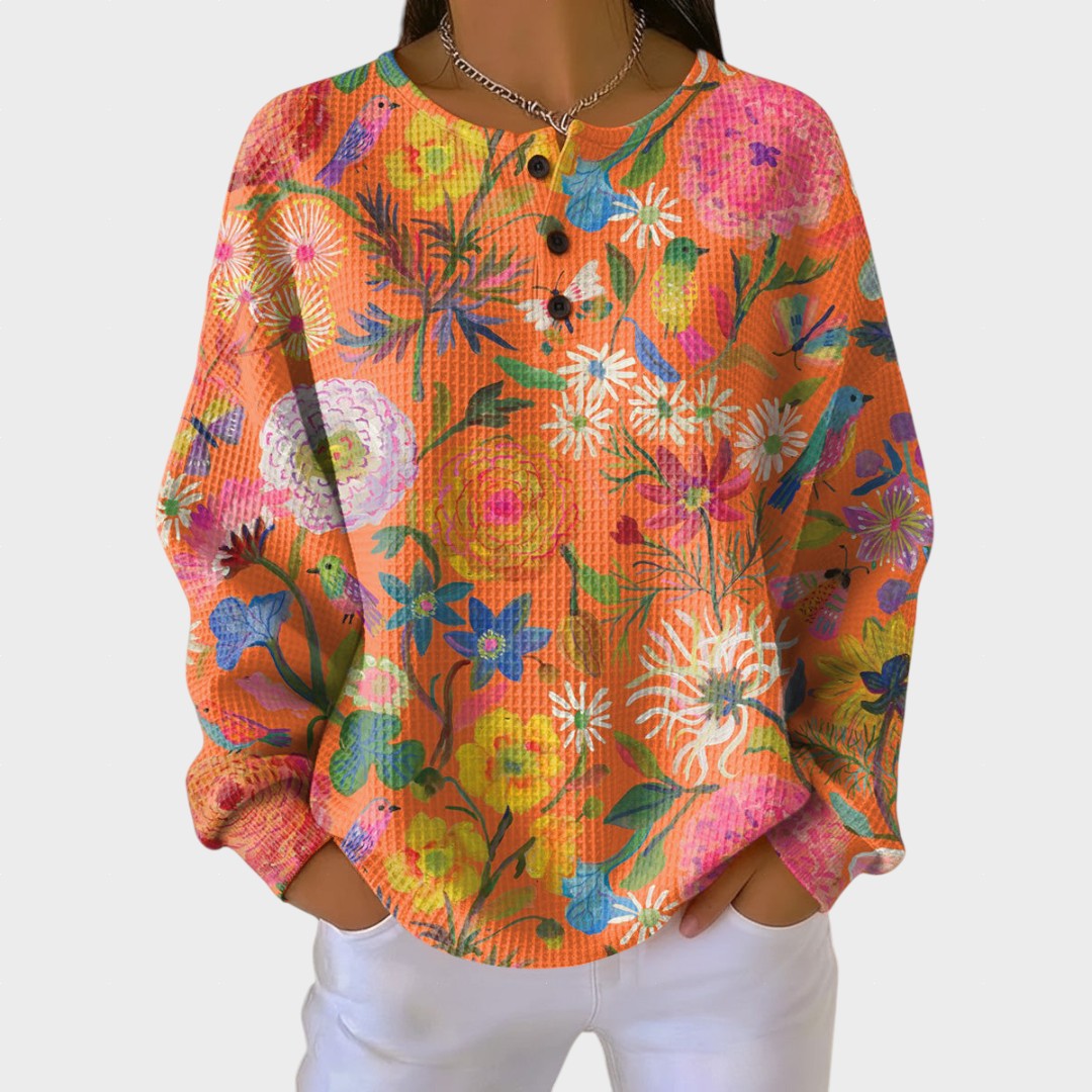 Esta blusa combina conforto e originalidade num design moderno e marcante. Com um padrão geométrico cheio de personalidade e um toque suave, é perfeita para quem gosta de se destacar com elegância e descontração. O corte solto proporciona liberdade de movimento e um visual versátil que se adapta tanto a momentos casuais como a ocasiões mais especiais.