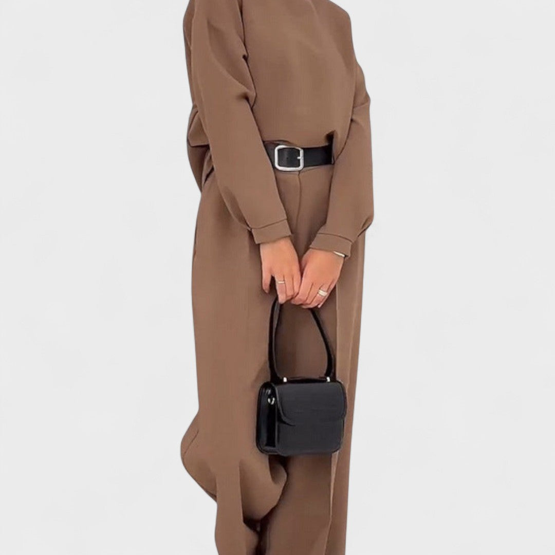 Este conjunto une o melhor dos dois mundos: a praticidade do estilo descontraído e a sofisticação de um corte moderno e fluído. Perfeito para o dia a dia ou para ocasiões mais elegantes, oferece liberdade de movimento sem comprometer a aparência refinada.