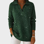 Esta camisola foi criada para quem adora um toque de glamour sem perder o conforto. O brilho subtil distribuído pelo tecido acrescenta um efeito luminoso encantador, perfeito para transformar até os looks mais simples. O decote com gola aberta confere sofisticação e alonga a silhueta, enquanto o corte descontraído garante bem-estar durante todo o dia.
