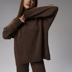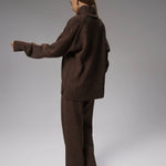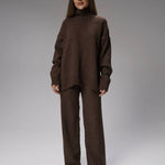 Este conjunto em malha foi criado para quem valoriza o equilíbrio perfeito entre bem-estar e estilo. A sua textura suave envolve o corpo com conforto absoluto, enquanto a silhueta descontraída e sofisticada transforma qualquer look num instante.
