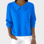 Esta camisola distingue-se pelo seu colarinho elegante que acrescenta um toque feminino e sofisticado a um design simples. Versátil e confortável, é uma peça que pode ser usada em ambientes casuais ou mais formais, elevando o visual sem esforço.