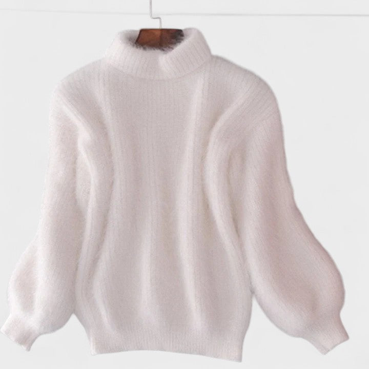 Esta camisola é a escolha perfeita para os dias frios em que o conforto é essencial, mas o estilo não pode faltar. O tecido macio e a gola alta garantem uma sensação de aconchego irresistível, enquanto o corte ligeiramente solto e as mangas volumosas conferem um toque moderno e elegante.