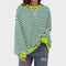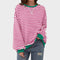 Esta sweatshirt alia conforto e estilo num design moderno e divertido. O padrão às riscas dá-lhe um toque jovem e intemporal, enquanto os detalhes contrastantes tornam a peça ainda mais especial.