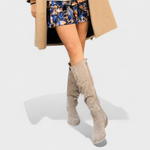 Estas botas de cano alto foram criadas para quem procura elegância sem esforço. O design versátil, aliado ao conforto, transforma qualquer look num conjunto sofisticado e cheio de personalidade.