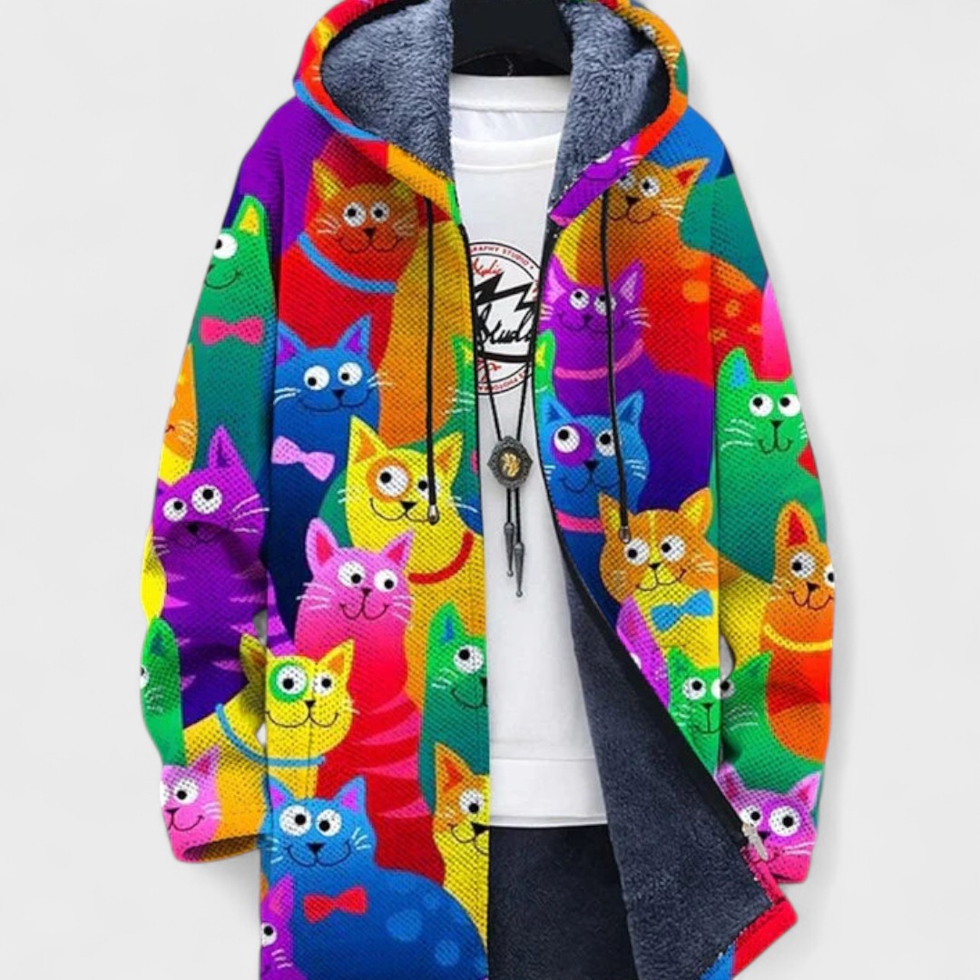 Descobre este casaco, versátil e quente, perfeito para qualquer estação. Com o seu design artístico, esta peça não é apenas uma peça de roupa, mas um verdadeiro elemento de estilo que enriquece o teu guarda-roupa.