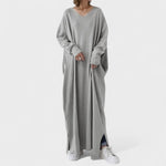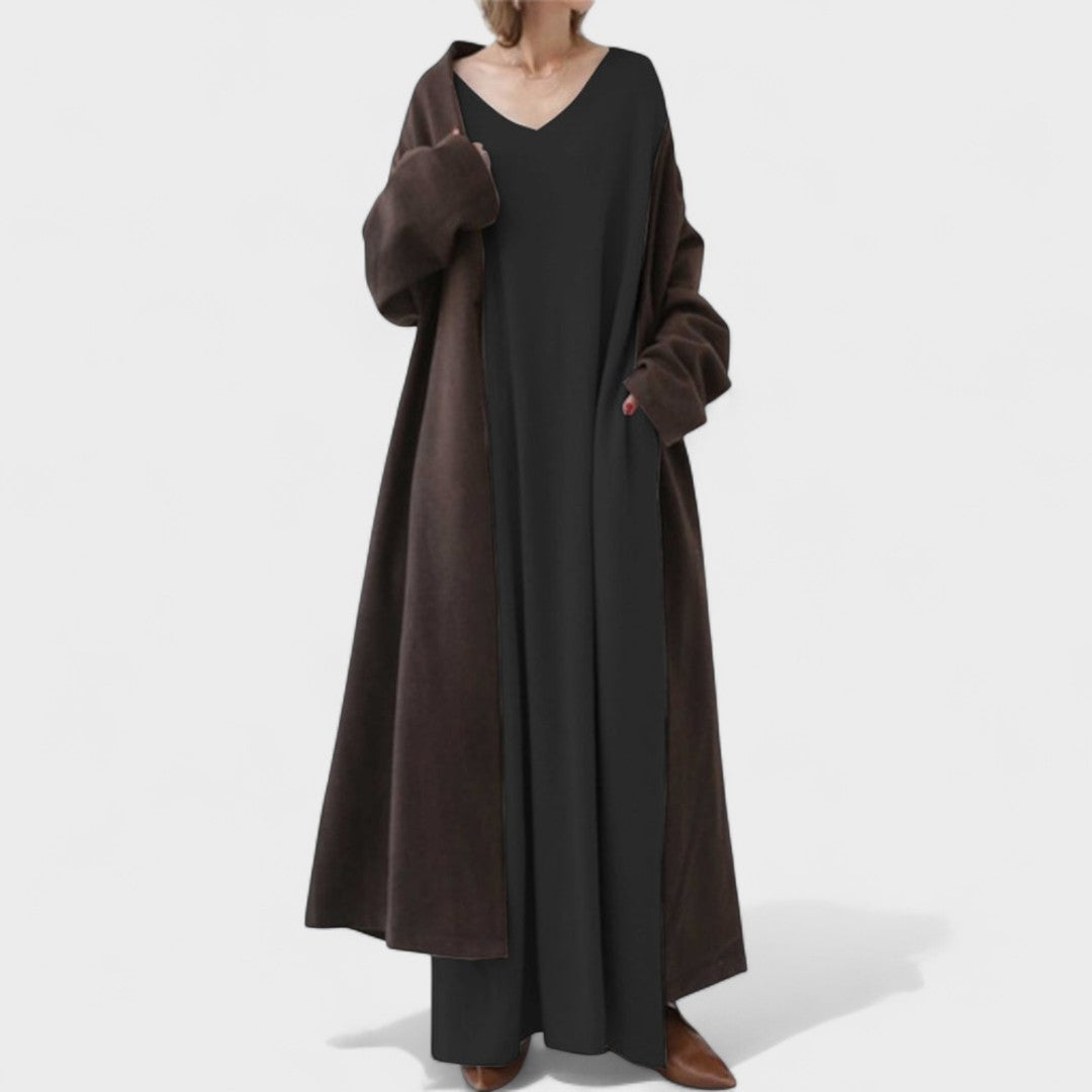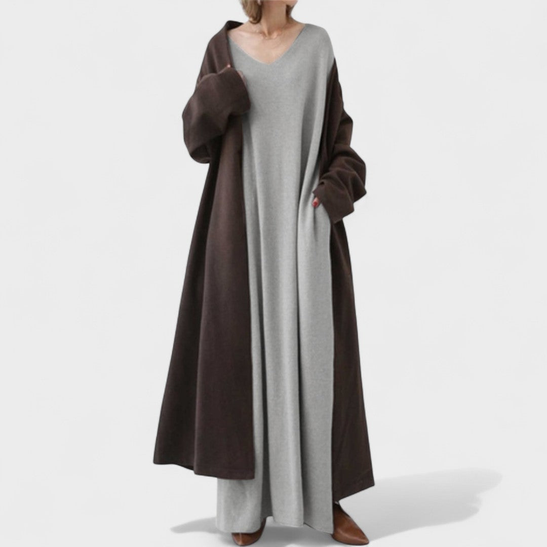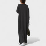Este vestido foi pensado para quem valoriza conforto sem abdicar de estilo. O seu corte amplo e fluído garante liberdade total, enquanto o design minimalista permite criar looks versáteis, desde os mais casuais até aos mais sofisticados.