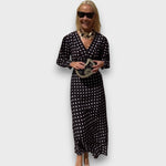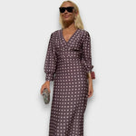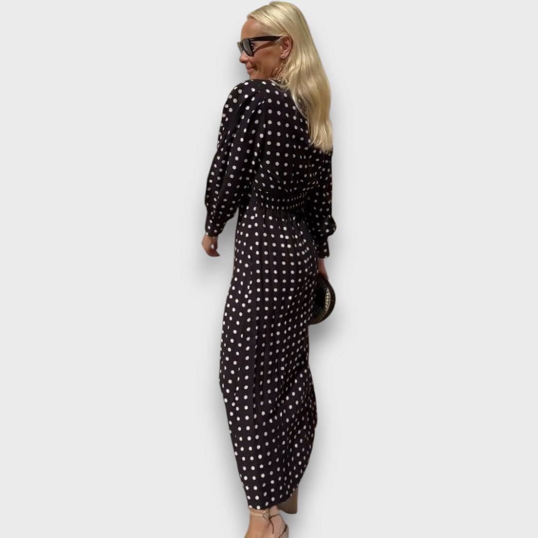 Este vestido longo com padrão intemporal é a escolha certa para quem deseja brilhar em qualquer ocasião. Com um corte feminino que valoriza a silhueta e mangas que acrescentam sofisticação, é a peça que equilibra charme e conforto de forma perfeita.