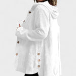 Este casaco combina conforto e estilo num design descontraído mas cheio de elegância. O corte ligeiramente amplo garante liberdade de movimento, enquanto os botões frontais e o capuz acrescentam praticidade ao look.