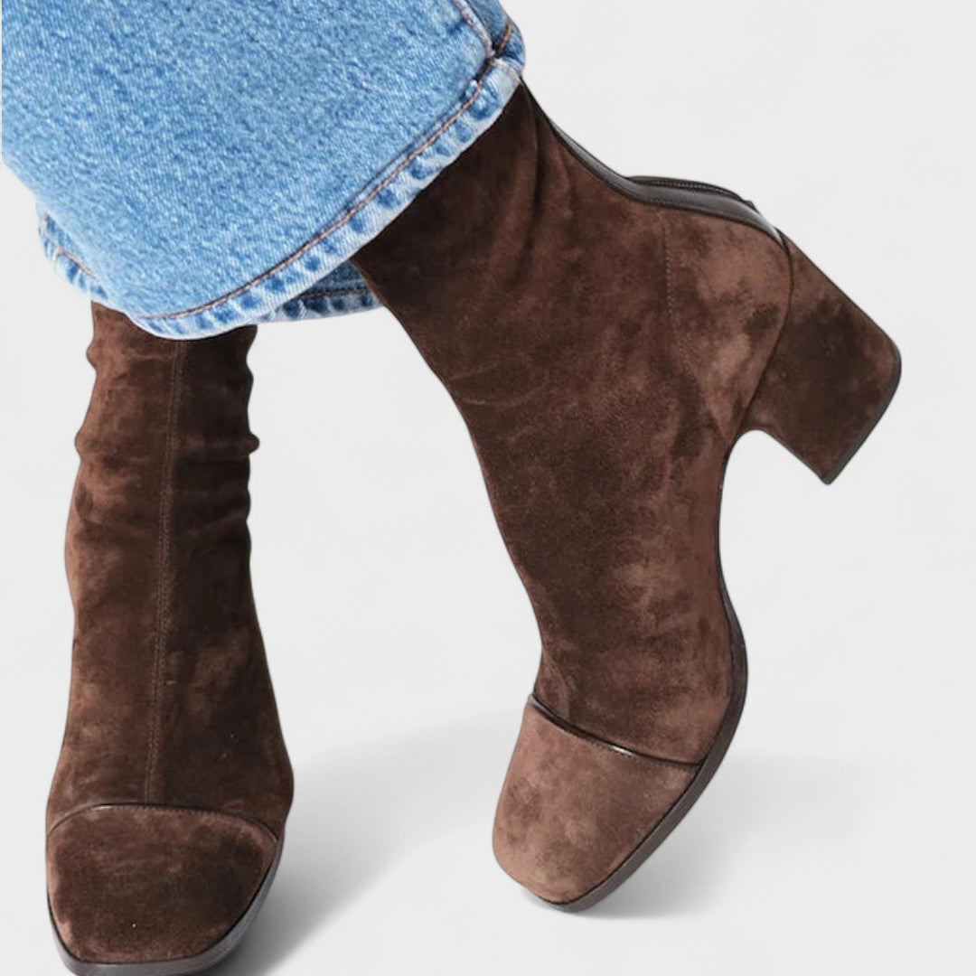 Estes botins de salto médio combinam estilo e conforto num design sofisticado e intemporal. Com um acabamento suave e um corte justo ao tornozelo, realçam a silhueta da perna enquanto proporcionam estabilidade e apoio durante todo o dia.