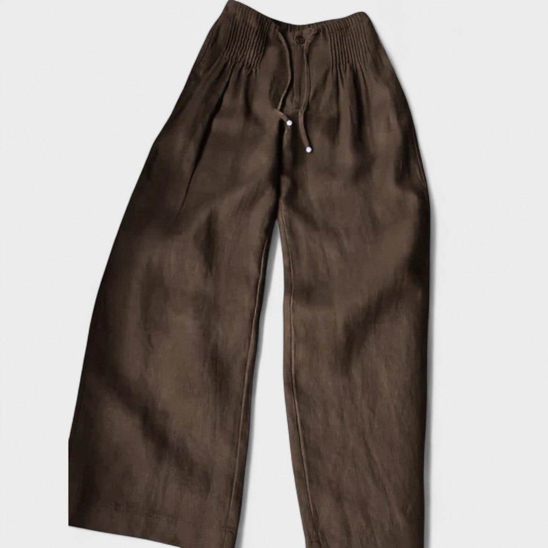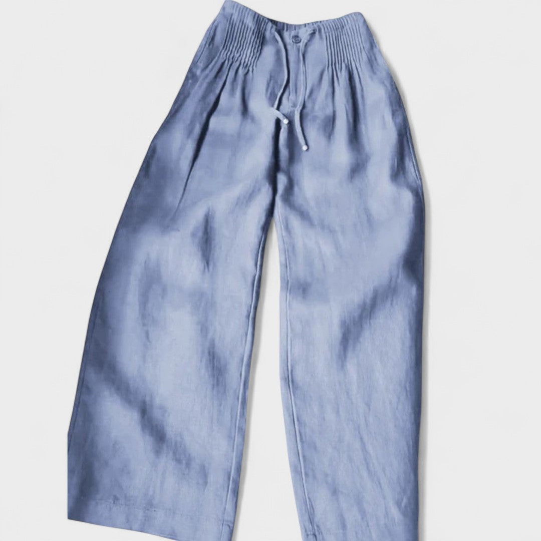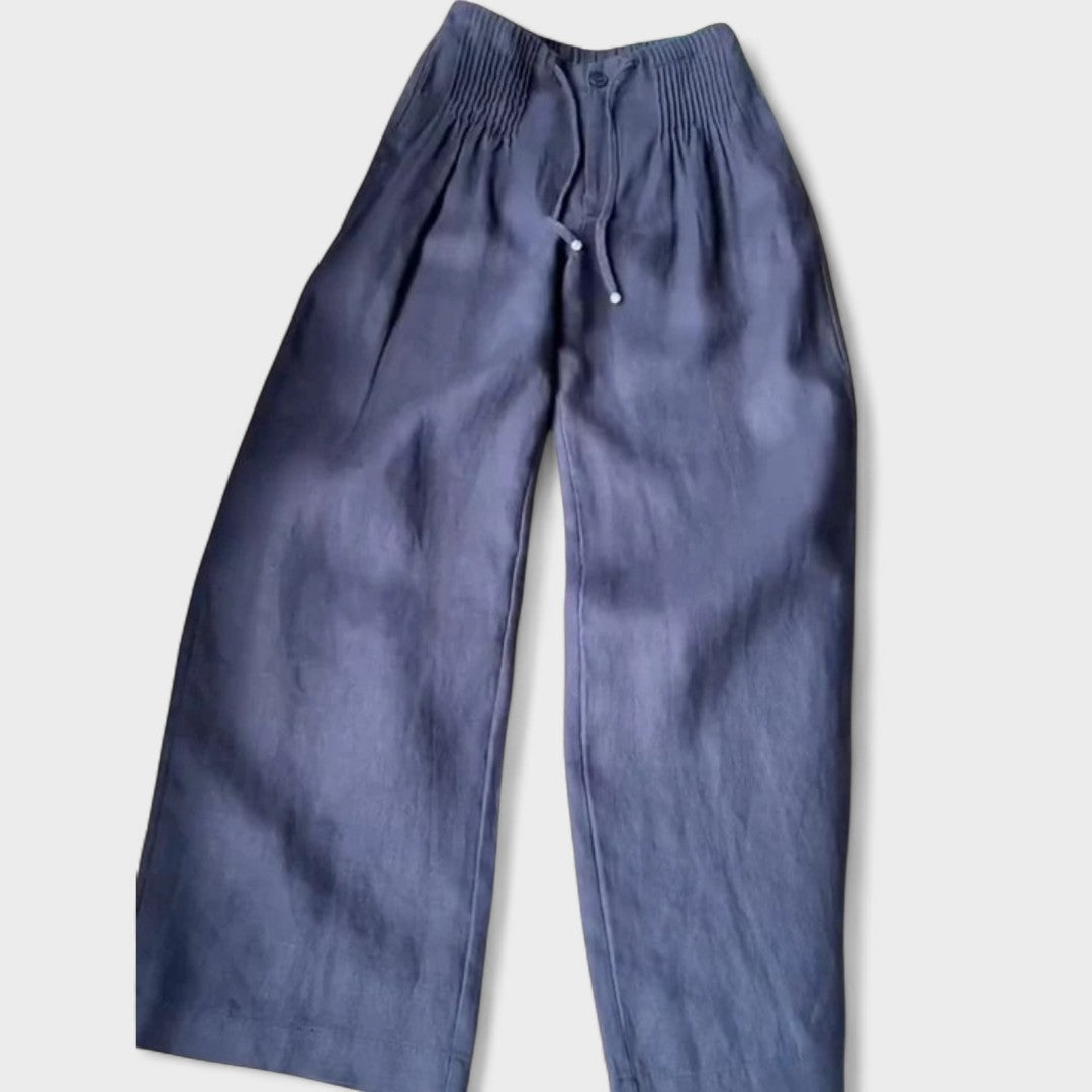 Estas calças em linho foram pensadas para oferecer o equilíbrio perfeito entre conforto e sofisticação. O corte solto garante liberdade de movimentos e frescura ao longo do dia, enquanto a cintura ajustável proporciona um encaixe prático e versátil.