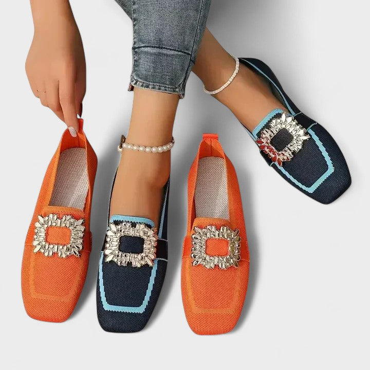 Estas sabrinas foram pensadas para mulheres que valorizam o equilíbrio entre conforto e sofisticação. O design moderno é elevado por um adorno brilhante que acrescenta um toque de glamour e exclusividade, tornando-os ideais tanto para o dia a dia como para ocasiões especiais.