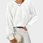 Esta camisola foi desenhada para quem aprecia peças que combinam estilo e aconchego. Com um padrão tricotado em relevo e um corte ligeiramente solto, oferece um visual moderno sem abrir mão do conforto.