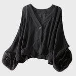 Uma peça que combina simplicidade e elegância num só design. A silhueta fluída, com mangas amplas e detalhes delicados, oferece um visual descontraído mas cheio de personalidade.