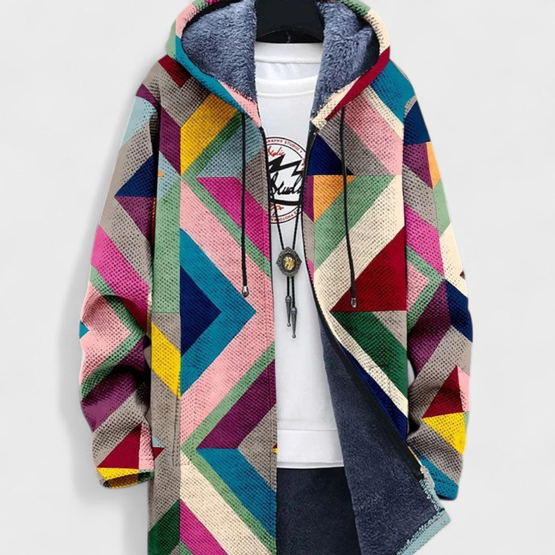 Descobre este casaco, versátil e quente, perfeito para qualquer estação. Com o seu design artístico, esta peça não é apenas uma peça de roupa, mas um verdadeiro elemento de estilo que enriquece o teu guarda-roupa.