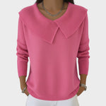 Esta camisola destaca-se pelo seu design limpo e sofisticado, onde o decote trabalhado dá um toque moderno sem perder a delicadeza. Confortável e fácil de combinar, é a peça ideal para quem procura um visual cuidado, mas descomplicado.