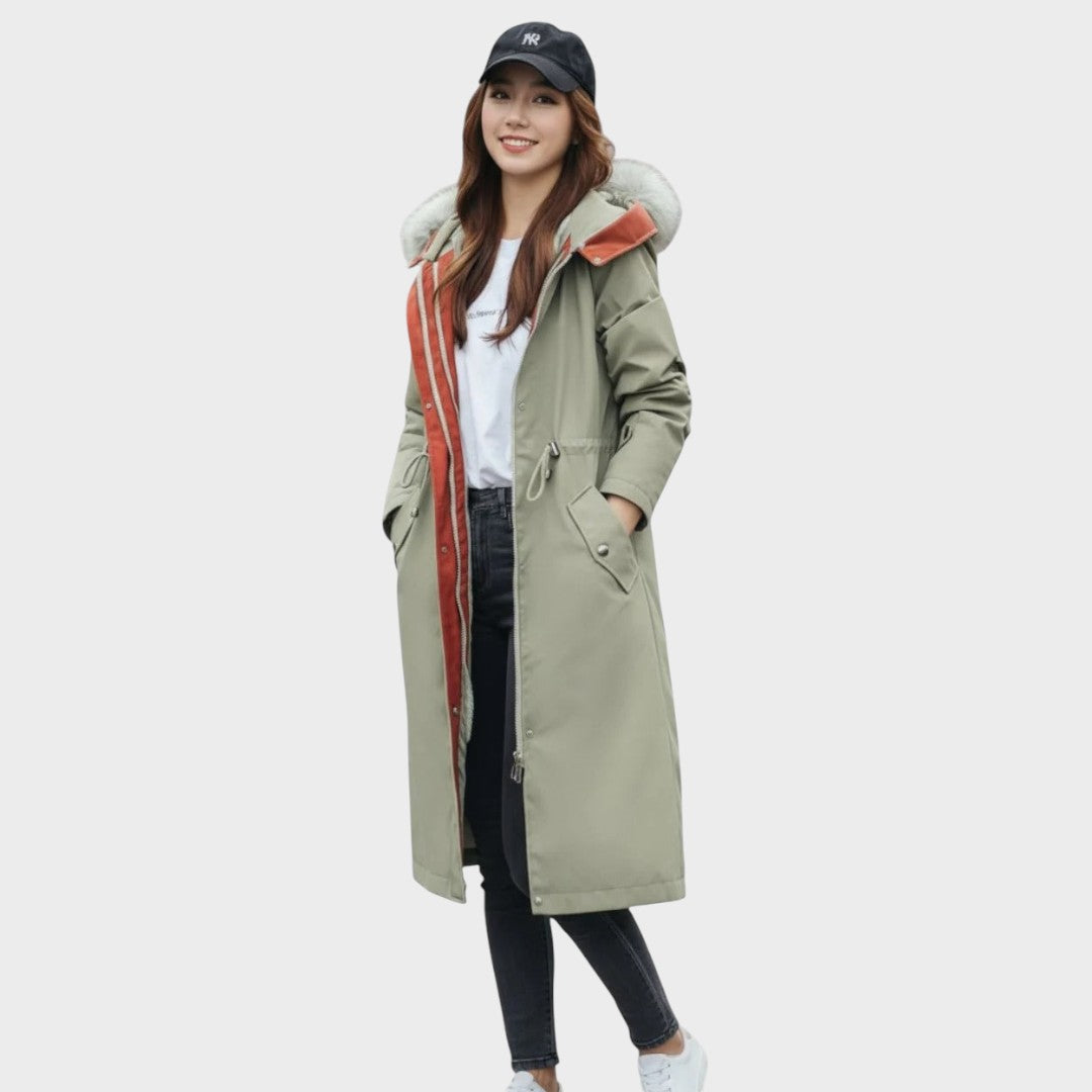 Este casaco comprido foi desenhado para enfrentar os dias mais frios com elegância e conforto. O corte moderno e o ajuste com cordão realçam a silhueta sem comprometer a liberdade de movimento. A gola alta e o capuz garantem proteção extra contra o vento e a chuva, tornando-o uma escolha prática e sofisticada para o dia a dia.