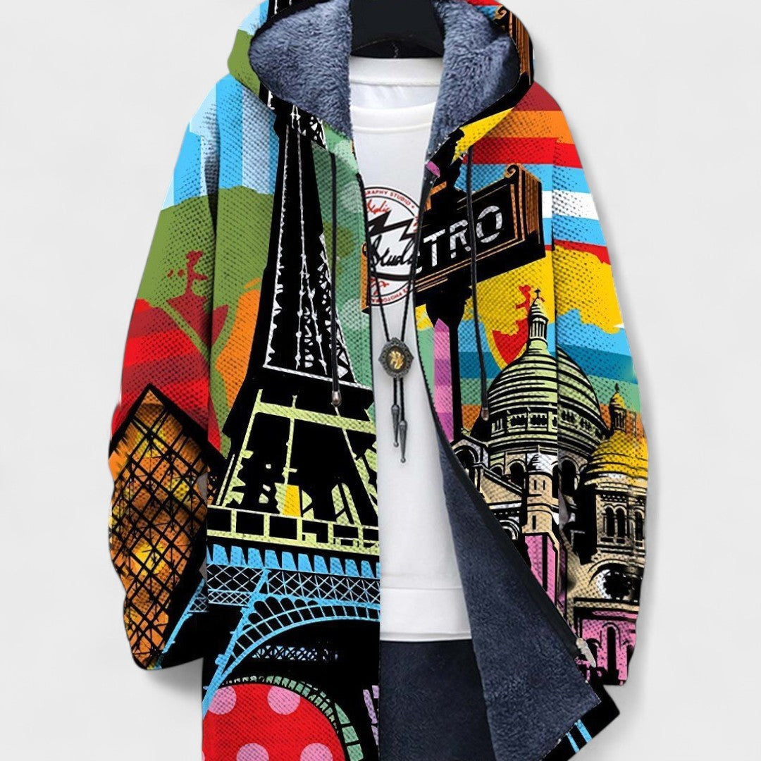 Descobre este casaco, versátil e quente, perfeito para qualquer estação. Com o seu design artístico, esta peça não é apenas uma peça de roupa, mas um verdadeiro elemento de estilo que enriquece o teu guarda-roupa.