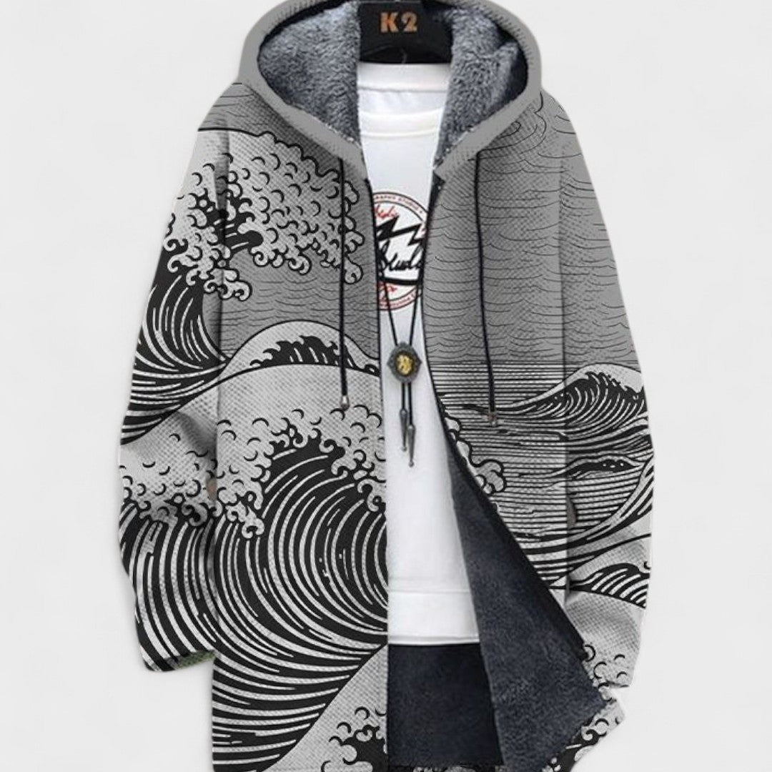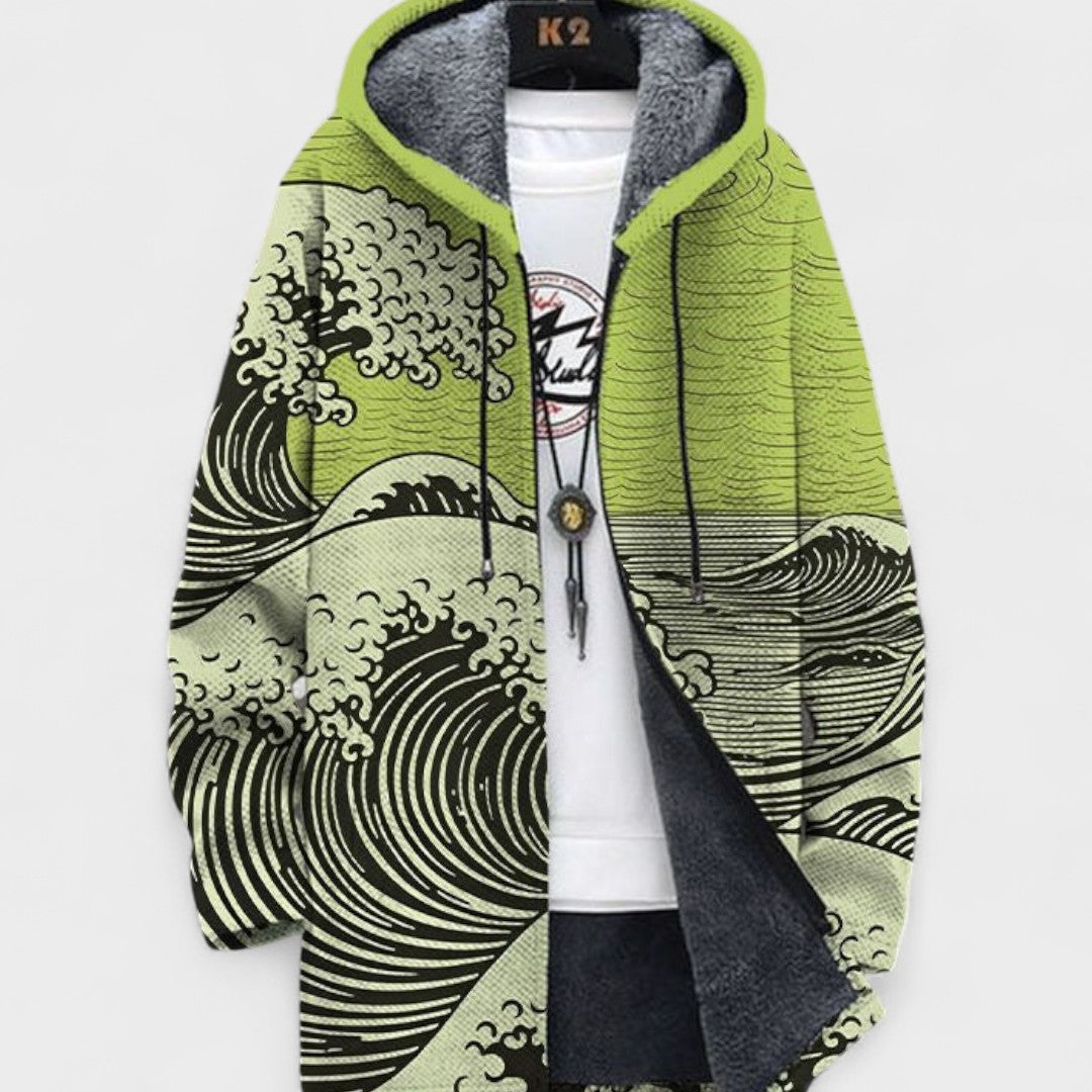 Descobre este casaco, versátil e quente, perfeito para qualquer estação. Com o seu design artístico, esta peça não é apenas uma peça de roupa, mas um verdadeiro elemento de estilo que enriquece o teu guarda-roupa.