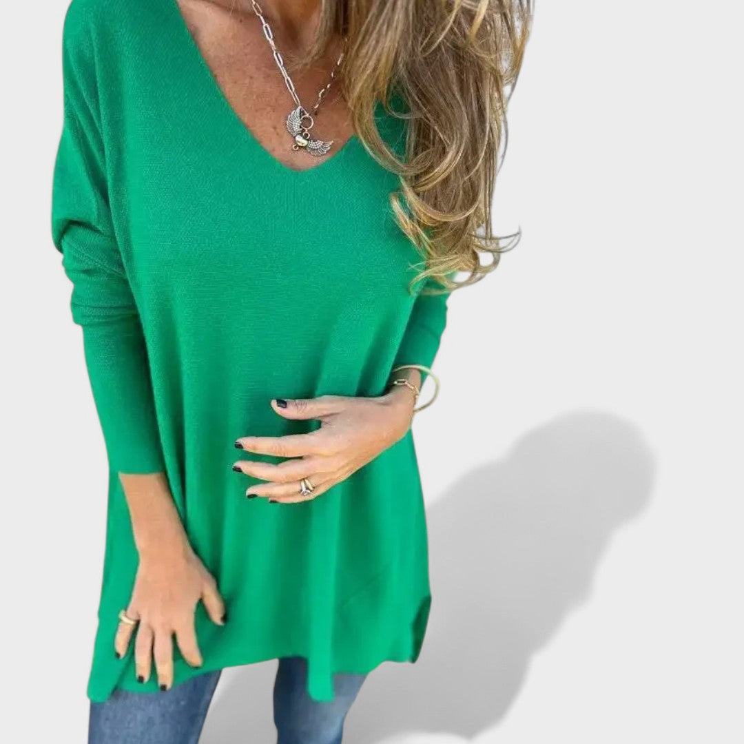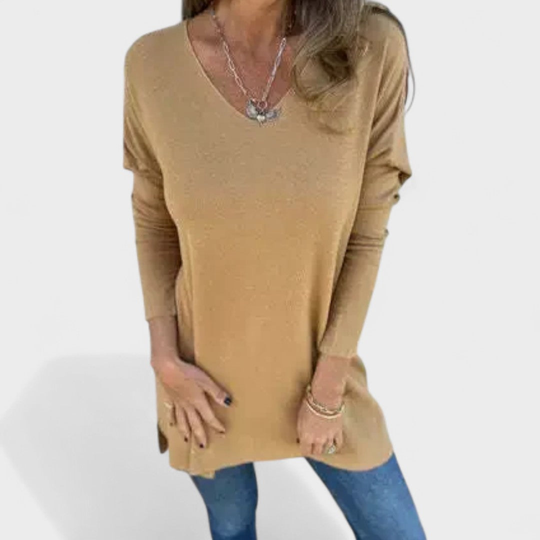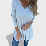 Esta camisola de corte solto foi pensada para mulheres que valorizam conforto aliado a um visual moderno. O decote em V acrescenta um toque elegante e alonga a silhueta, enquanto o design minimalista torna-a uma peça versátil para qualquer ocasião.