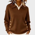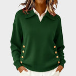 Este camisola combina conforto com um toque de sofisticação, graças ao seu design cuidadosamente pensado. O colarinho elegante e o decote subtil criam uma aparência moderna, enquanto os botões decorativos laterais acrescentam personalidade e destaque ao visual.
