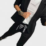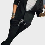 • Design moderno – combina o corte clássico do blazer com a descontração das calças ajustáveis.