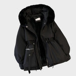 Este casaco foi pensado para quem não abdica de elegância mesmo nos dias mais frios. Com corte moderno e detalhes sofisticados, combina praticidade e design num só modelo. O forro macio e o capuz com acabamento em pelo conferem aconchego extra, enquanto o ajuste na cintura valoriza a silhueta de forma subtil e elegante.