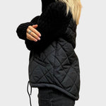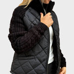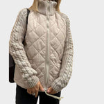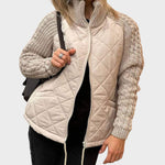 Este casaco combina o conforto do acolchoado com a elegância das mangas em malha, criando uma peça única e versátil. Ideal para os dias mais frios, oferece a proteção térmica de que precisa sem abdicar de um design moderno e cheio de personalidade.