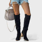 Estas botas altas são o equilíbrio perfeito entre elegância e atitude. Com um design moderno e um toque boémio, adaptam-se facilmente a diferentes estilos — desde o mais casual ao mais sofisticado. O salto robusto garante estabilidade e conforto, enquanto o cano alto alonga a silhueta e adiciona um toque irresistível de confiança.