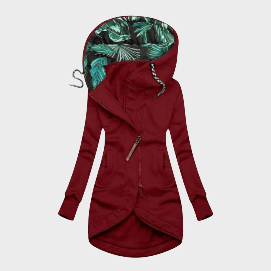 Este casaco com capuz foi desenhado para quem valoriza conforto e originalidade. O detalhe interior estampado traz uma energia fresca e diferenciadora, transformando uma peça prática em algo cheio de personalidade.