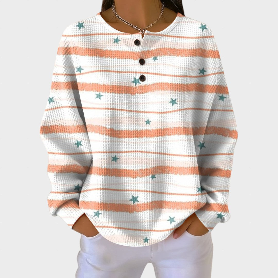 Esta blusa combina conforto e originalidade num design moderno e marcante. Com um padrão geométrico cheio de personalidade e um toque suave, é perfeita para quem gosta de se destacar com elegância e descontração. O corte solto proporciona liberdade de movimento e um visual versátil que se adapta tanto a momentos casuais como a ocasiões mais especiais.
