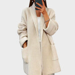 Este cardigan em malha é a peça perfeita para quem procura praticidade sem abrir mão da elegância. O seu design descontraído com bolsos laterais torna-o funcional, enquanto a textura de tricot acrescenta um toque acolhedor e moderno.