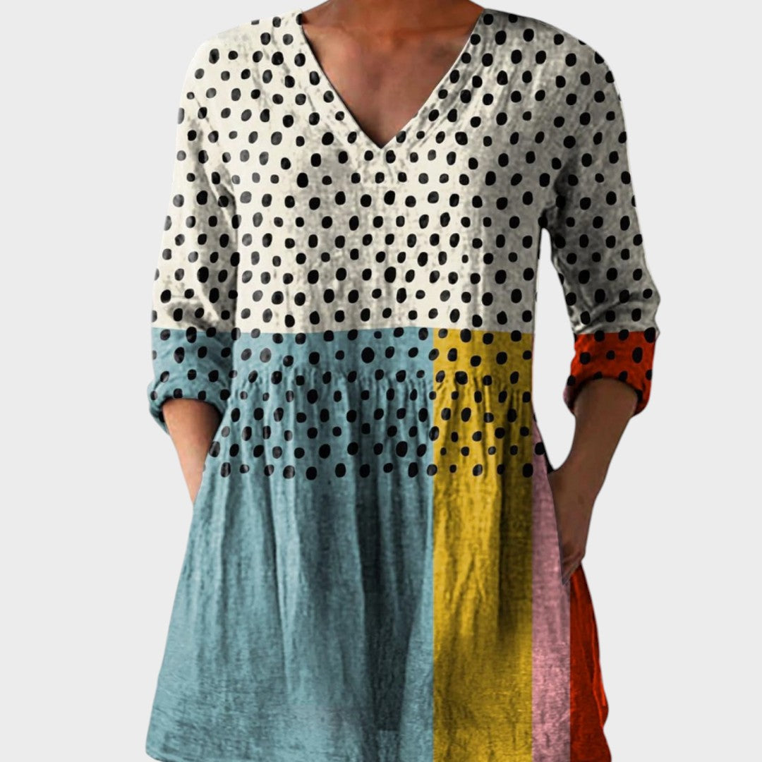 Sente-te leve, criativa e única com esta blusa/túnica que combina conforto e estilo de forma irresistível. O seu design moderno com padrão divertido e corte fluido adapta-se a qualquer ocasião — seja para um passeio casual ou um dia de trabalho cheio de energia.