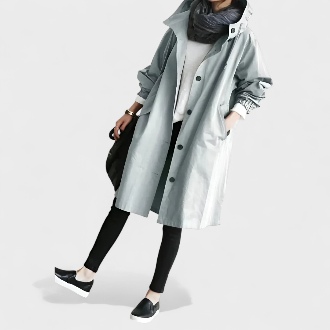 Um casaco pensado para quem não abdica da elegância mesmo nos dias mais imprevisíveis. Com um corte moderno e fluído, garante liberdade de movimentos e um visual sofisticado.