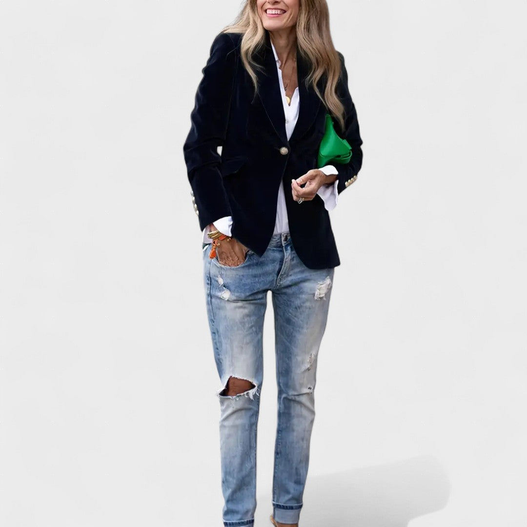 Este blazer redefine o conceito de sofisticação moderna. Com um corte impecável e um toque suave, adapta-se perfeitamente a qualquer ocasião — seja um dia no escritório ou um encontro casual.