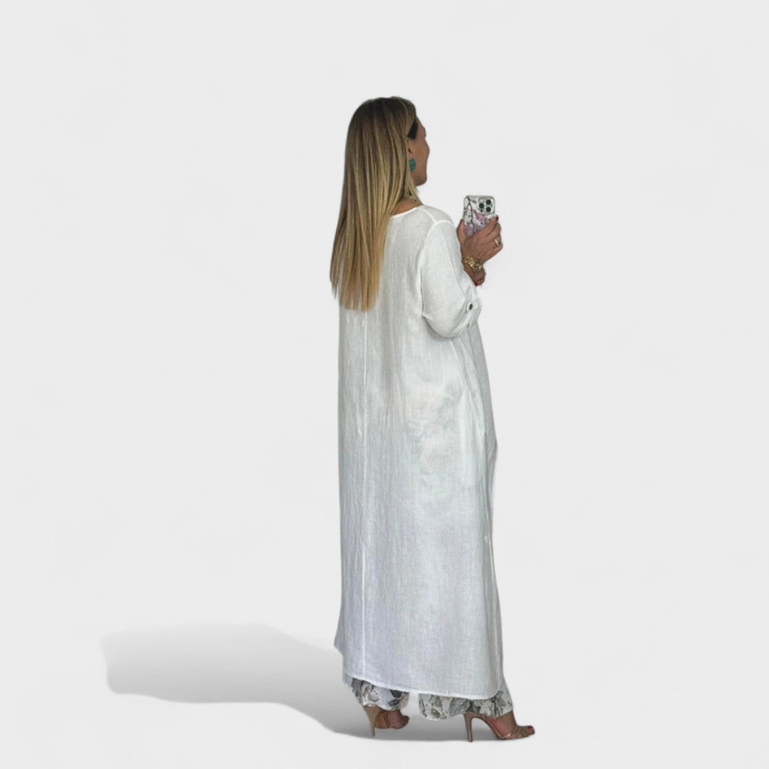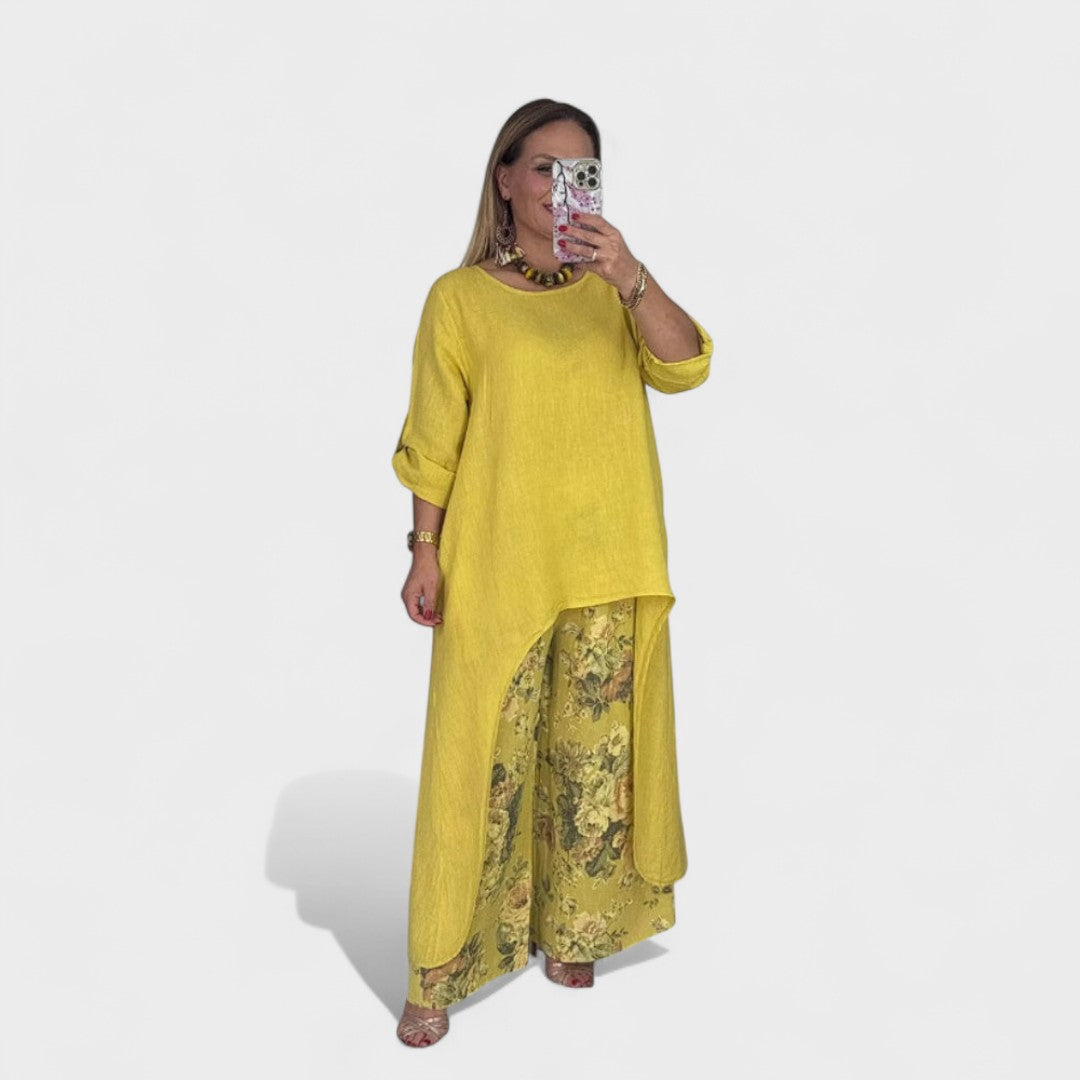 • Estilo único – O equilíbrio entre fluidez e detalhes sofisticados torna este conjunto uma peça indispensável no guarda-roupa.