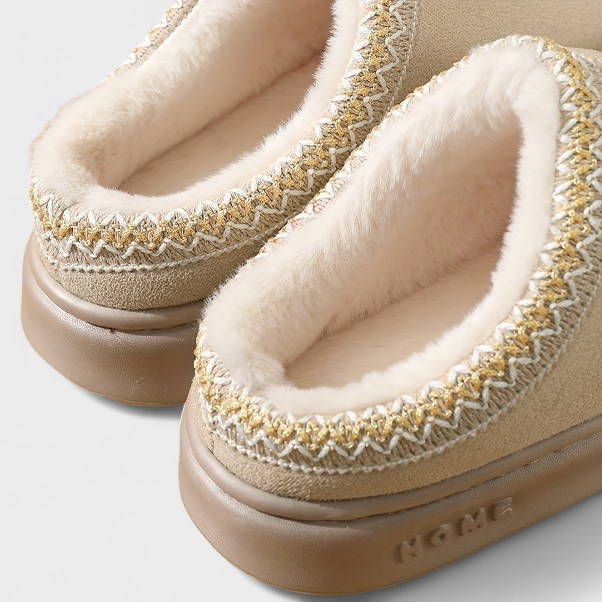 • Design elegante e artesanal — detalhes cuidadosamente trabalhados que elevam o look das pantufas.